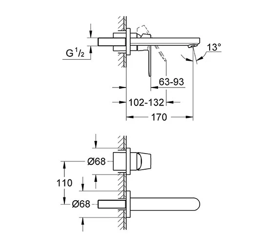 Grohe Eurosmart Cosmopolitan Wall Mounted Chrome Basin Mixer Tap – 19381000