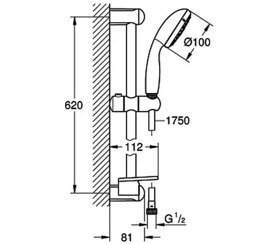 Grohe New Tempesta 100 Chrome Shower Rail Set 3 Sprays