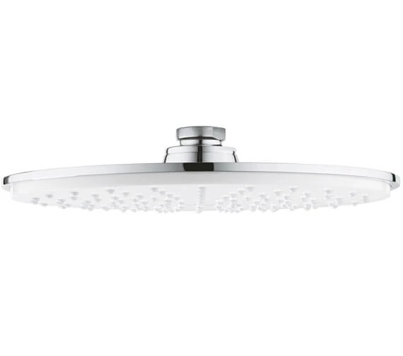 Grohe Rainshower Cosmopolitan Head Shower 1 Spray is beautifully designed while keeping customers needs in mind. It is available in three trendy variations: chrome without flow limiter, chrome with flow limiter, and moon-white chrome without flow limiter. This circular head with numerous apertures is made with excellent quality metal with a ball joint that comes with the promise of generous showering pleasure. It has a feature of speed cleaning with an anti-limescale system which makes this head shower highly durable.