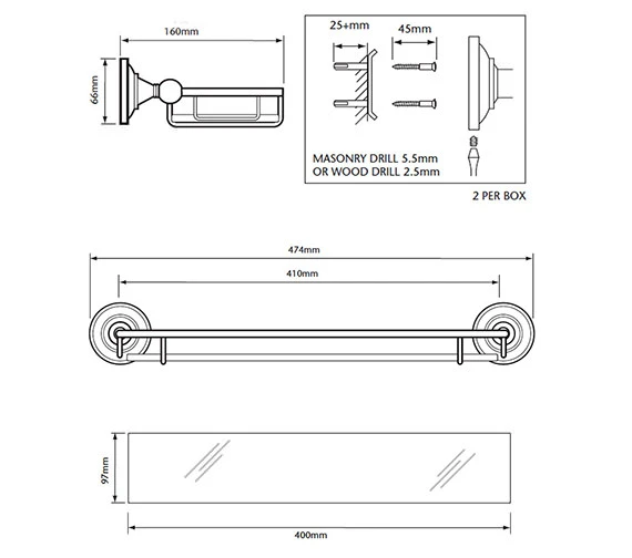 - Complete with screws and fixings.