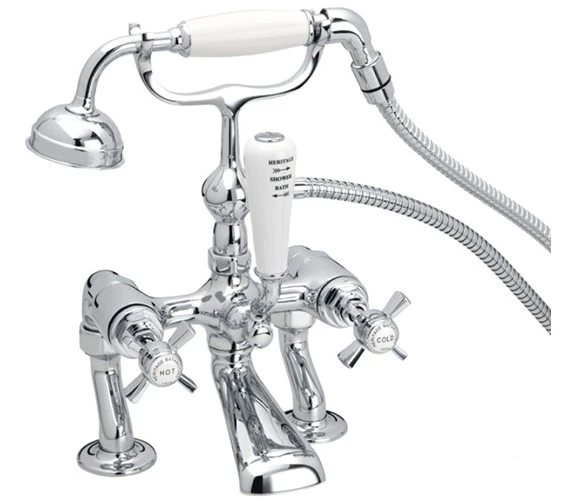 The Heritage Dawlish Bath Shower Mixer Tap is an intricately designed vintage bath and shower mixer tap that will add classic luxury to your bathroom. The product comes with a traditional shower handset, a wall bracket and a . The crosshead handles and the phone-style handset give it its traditional look, while the chrome, vintage gold or brushed nickel finish offers it a more contemporary and clean-looking shine.