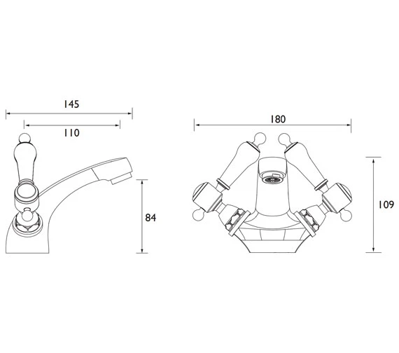- The centre of the inlet to the centre of the outlet is 110mm.