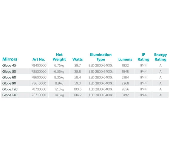 The HIB Globe Steam Free LED Mirror is suitable for both portrait and landscape configurations and is IP44 rated for safe installation within any bathroom area. Offering an A energy rating that keeps the usage costs down, this product features colour temperature changing LED illumination that is true lighting made to last for days, months and years to come. Available in six possible sizes to choose from, this unit also incorporates a heating pad within it that helps clear condensation from the central area of the mirror as quickly as possible. Boasting an incredibly easy to use sensor switch, this product can be turned off and on easily with just the quick movement of your hand.