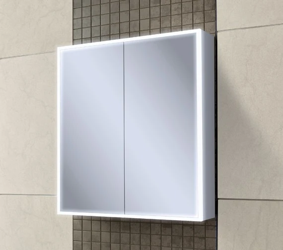 HIB Qubic Double Door LED Aluminium 700mm Height Mirror Cabinet
