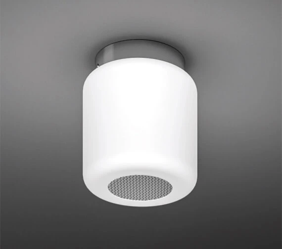 Hibs Rhythm series of Ceiling Lights combine the prospect of LED illumination flowing in smooth transitions between warm and cool shades of white along with Bluetooth connectivity with compatible devices to play audio inside your bathroom. The ceiling-mounted light is RGB mode enabled to produce 12 distinct colours to enliven or soothe the ambience of your bathroom. The remotely operated ceiling light is dimmable and its controls can be accessed from a fixed wall switch. Supplied with a water-resistant remote control and 6w speakers, the IP44 rated, hand-blown glass shade carries a 2-year warranty on its electrical components.