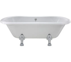 Hudson Reed Kingsbury Freestanding Acrylic Bath will add greater functionality to your bathroom and brings luxurious relaxation. The double-ended roll top bath with chrome-plated leg set comes as standard and can be purchased in 2 lengths. The tub is supplied un-drilled for taps with optional waste. Made using 14mm thick acrylic material and finished in chrome for easy care, it is resistant to rust or other corrosion types. It has been given a white finish and is backed by five years guarantee from the manufacturer.