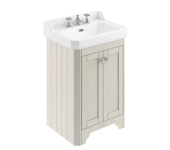The Hudson Reed Old London 2 Door Floor Standing Vanity Unit with Basin is a stylish, versatile unit that comes with your choice of 1, 2, or 3 tap holes within the included vitreous china basin for use. Complete with soft close doors that include 95-degree inset clip-on hinge, this product is easily opened and closed via the brushed nickel knob style handle. Supplied rigid for fast and easy installation, this model is suitable for placement within a traditional or modern bathroom design style. Available in more than one stylish finish, this unit is constructed from MDF vinyl textured woodgrain that is truly made to last.