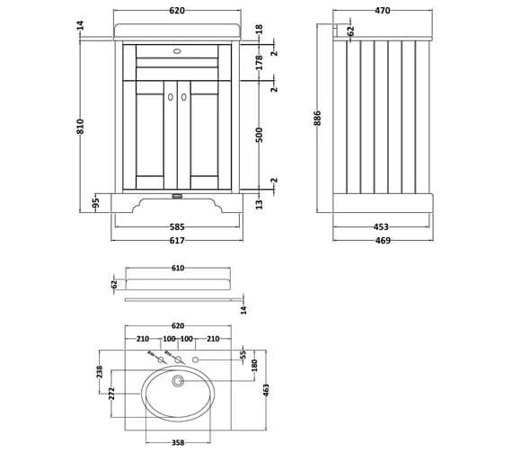 - Size for 600mm and 800mm: Depth 463mm x Height 268mm.