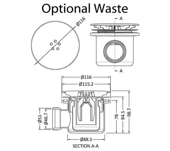 - 1300-1800mm Length tray comes with Centre waste hole.