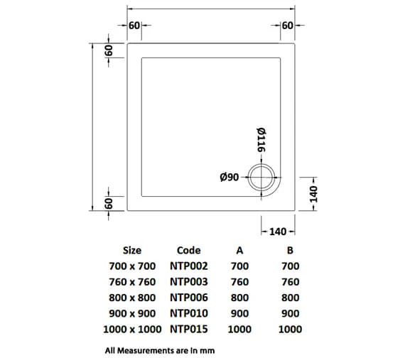 - Choice of different sizes available : 700 x 700mm, 760 x 760mm, 800 x 800mm, 900 x 900mm and 1000 x 1000mm – [Optional].