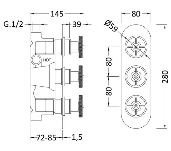 Hudson Reed Revolution Industrial Triple Shower Valve comes with or without diverter in a stunning format. It has a Width of 100mm, Depth of 145mm and Height 280mm. Suitable for low-pressure water systems, it works with a minimum of 0.1 bar of water pressure. Designed for industrial purpose, the high quality internal brassware assures unhindered service. The valve finds applications in gravity fed pumped unvented high pressure or fully modulated combi-boilers.