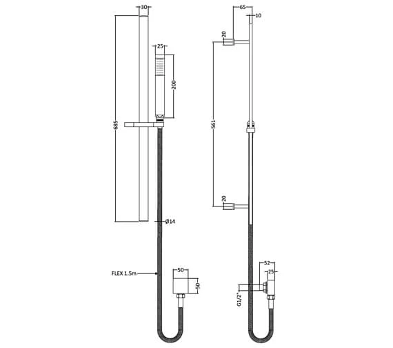 Hudson Reed Sheer Slider Rail Kit Chrome With Shower Handset And Outlet Elbow