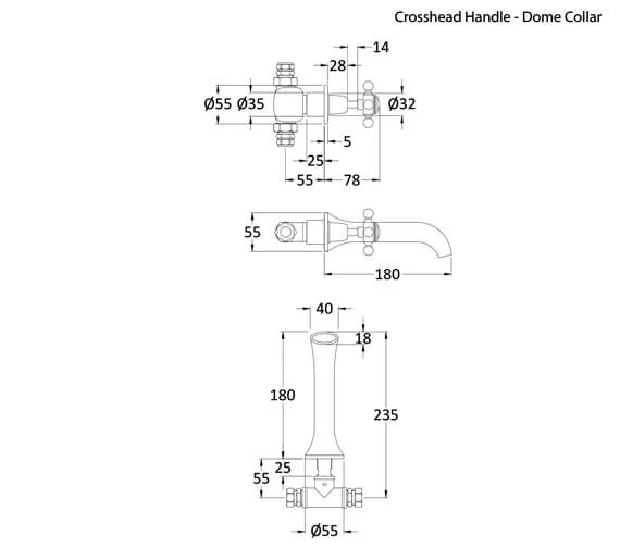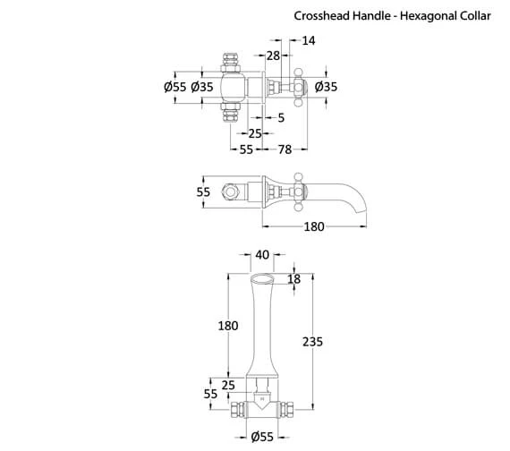 Hudson Reed Topaz 3 Hole Wall Mounted Basin Mixer Tap is a traditionally designed three-hole mixer. Its impressive 3 hole design with period design adds the luxury quotient within any bathroom design. It features the latest ceramic disc technology for uninterrupted working. High quality brass internals has been given an appealing chrome finish that gives it durability and keeps it shiny and new.