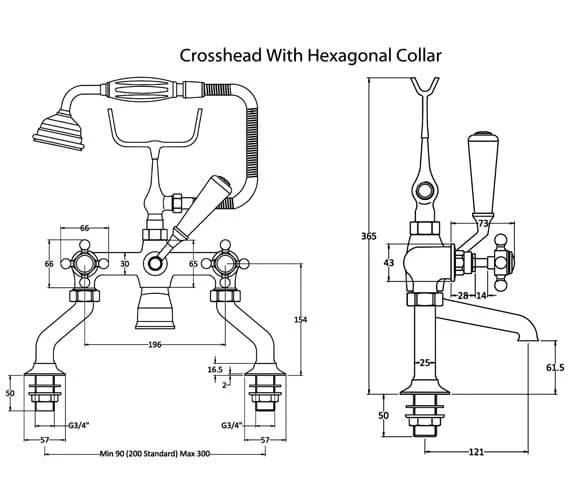 - The centre of the inlet to the centre of the outlet: 121mm.