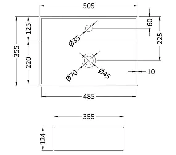Finish off your bathroom or powder room in style with this Hudson Reed Vessel Rectangular Countertop Basin. The basin is white and fashioned out of high-quality vitreous china, easy to wipe clean and to keep looking spotless. A single predrilled tap hole is included for you to install the tap of your choice, while the basin also includes an overflow and a cover. The product measures an overall size of 500 millimetres in width by 350 millimetres in depth by 120 millimetres in height and ideal for countertops.