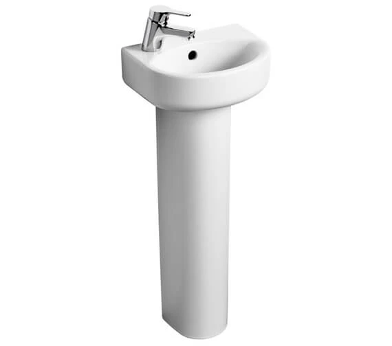 Tall and elegant-is what defines the Ideal Standard Concept Arc Handrinse Basin With Overflow. This practical model is made from best quality fireclay to ensure strength and endless use. It is the perfect combination of minimalist style and excellent performance. The tall pedestal gracefully holds up the short D-shaped basin. The white finish of this basin can blend with most interiors, proving its versatility.
