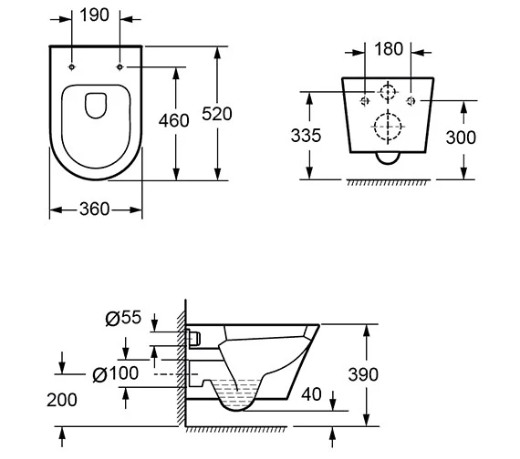 IMEX Arco 520mm White Wall Hung WC Pan With Fixing