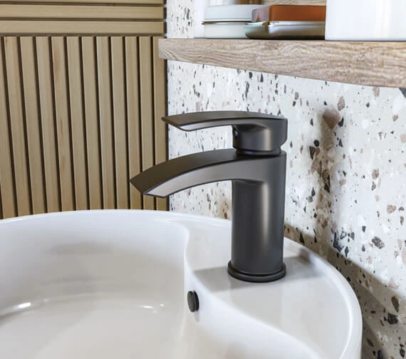 Joseph Miles Belini Basin Mixer Tap can be purchased in more than one size and finish choice. The mixer is an attractive deck-mounted brassware that embodies the design principles of the latest designer bathroom fittings within modern materials and technology. The mixer has a solid body with a sloping flat lever and spout and provides a stylish and unique alternative to most basin mixers. The deck-mounted installation comes included with push waste and a Lifetime warranty against any manufacturing defects.