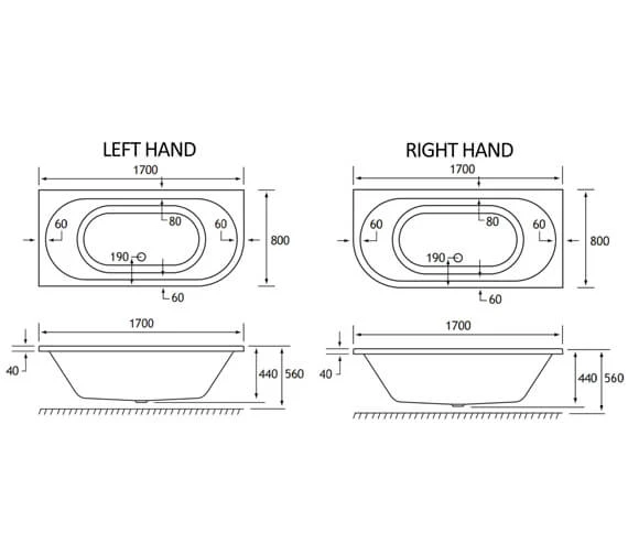 - Specification of 1700 x 800mm Bath :.