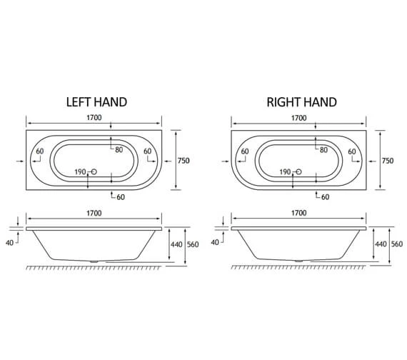 - Specification of 1700 x 750mm Bath :.