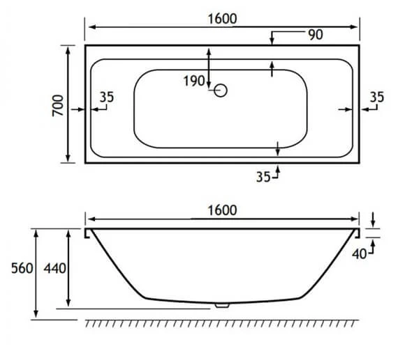 - Specification of 1600 x 700mm Bath:.