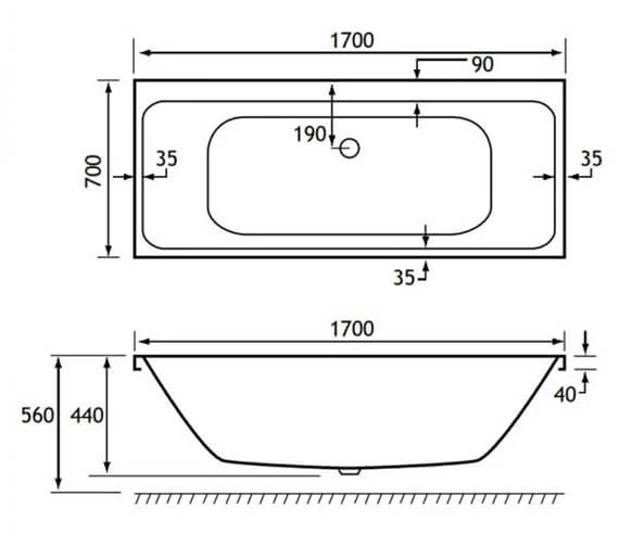 - Specification of 1700 x 700mm Bath:.