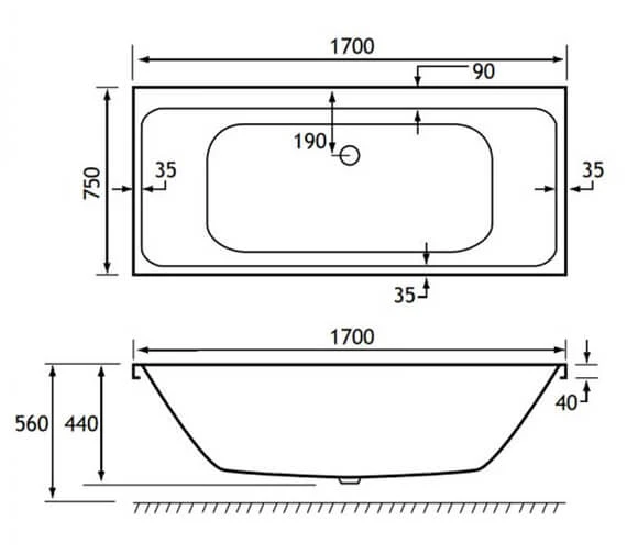 - Specification of 1700 x 750mm Bath:.