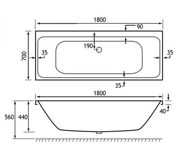 - Specification of 1800 x 700mm Bath:.