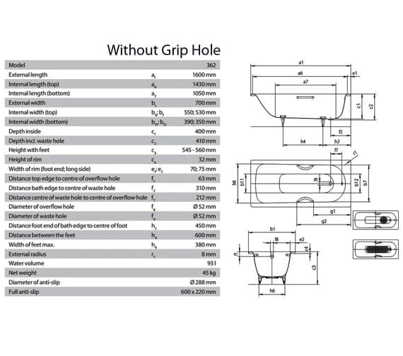 - ✔30 year guarantee from Kaldewei against any manufacturing defects