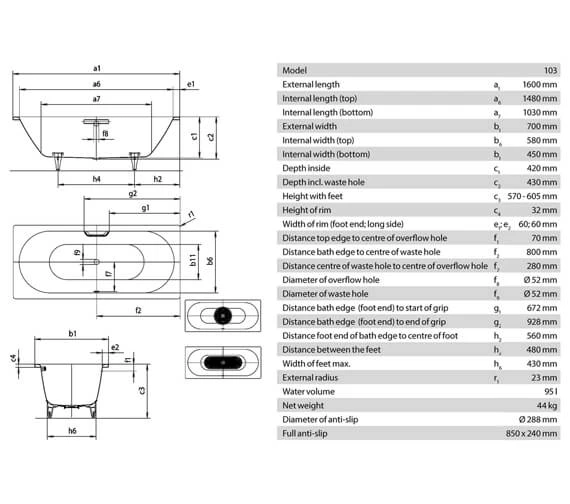 - โThirty years guarantee from Kaldewei against any manufacturing defects