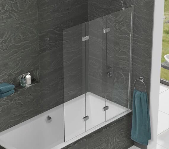 Enjoy, the company of three, with this exquisite, Inspirational 3 Panel Bath Screen from Kudos. Smartly transcending your into a gleeful showering area, this bath screen is strong, made from 6mm toughened safety glass. Featuring a polished silver frame, this bath screen will create a sensation in your bathing or showering. With one fixed panels and 2 folding ones, you can easily maintain the resplendence, of your spacious bathroom. Kudos provides a lifetime guarantee with this scintillating 3-panel bath screen.