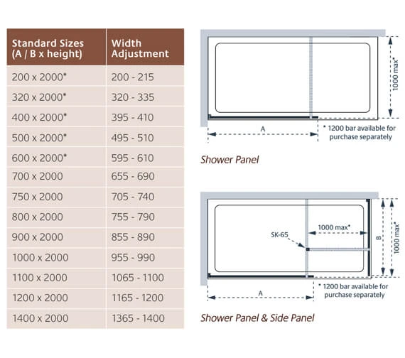 - The side panel, 90° bar joining kit, and extended bracing bar for the shower panel are available separately [See Option].