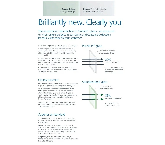 The Lakes Coastline Malmo Corner Entry Shower Cubicle is designed to slot neatly into the bathrooms corner space and is incredibly space-saving. Creating a safe and relaxing space to shower and unwind, its use of PureVue HD high quality, optically superior low-iron Glass makes it a bright and welcoming part of the living space. As the cubicle is made of low-iron Glass, most buyers are stunned by the crystal clarity of the Glass.