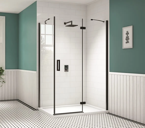 Glorify the aesthetics of your shower space by fitting it with the Merlyn Black Hinge Shower Door And Inline Panel. 8mm toughened safety clear glass makes it strong enough to endure the test of time. Treated with Mershield Stayclear easy clean glass protective shield, this glassy glory is easily cleanable and ideal for use in a busy, family bathroom. It’s Anodised aluminium matte black finish makes it visually appealing and attractive.