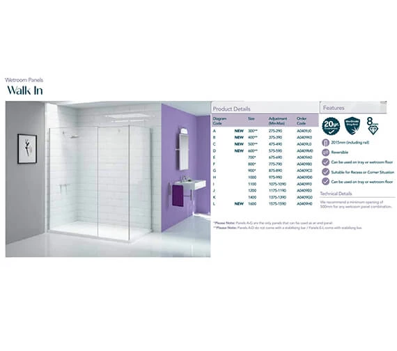 - The price includes only Wetroom Panel and no tray, shower waste, brassware, or other items.