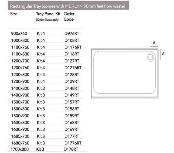 - Note: Waste is centred on 1700mm x 800mm shower tray.
