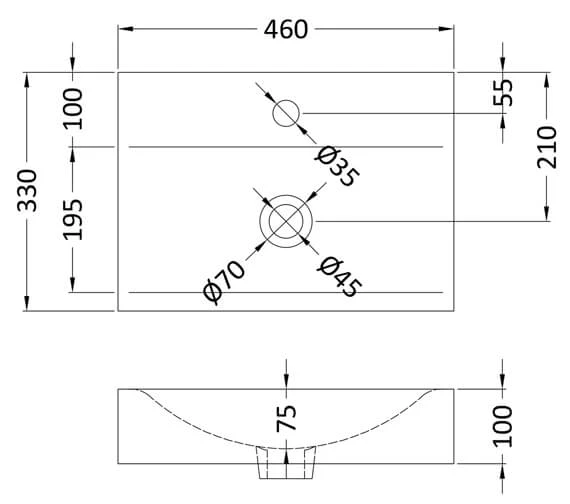 Nuie 460 X 320mm White Rectangular Vessel Countertop Basin