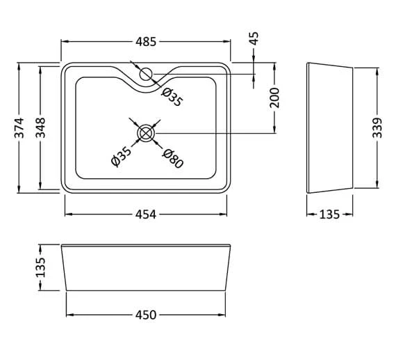 Nuie 485 X 374mm White Rectangular Counter Top Vessel Basin