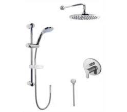 Nuie Arvan Concealed Round Manual Valve With Shower Kit And Fixed Head will charm you instantly with its compact dimensions and smooth chrome finish. It comes with a fixed head, arm, shower kit and elbow. Compatible with all plumbing installations. Constructed from solid brass and ABS material, the slide rail kit is extremely strong and long-lasting, easy to maintain and suitable for low water pressure systems. The valve has a diameter of 170mm and a height of 183mm and can be mounted recessed or on the wall.