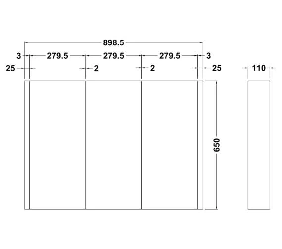 Nuie Eden 898mm X 650mm High Gloss White 3 Door Mirror Cabinet