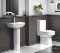 For glamorously enhancing the designer appeal of your bathroom, get this Harmony White Finish 4 Piece Suite from Nuie. Refined elegance radiated from the glistening white finishing. The striking , , pedestal and cistern feature a convenient dual flush button and the flush mechanism. This suite is made from durable high quality ceramic and ensures long-term durability. Nuie provides a 5 year guarantee on this suite.