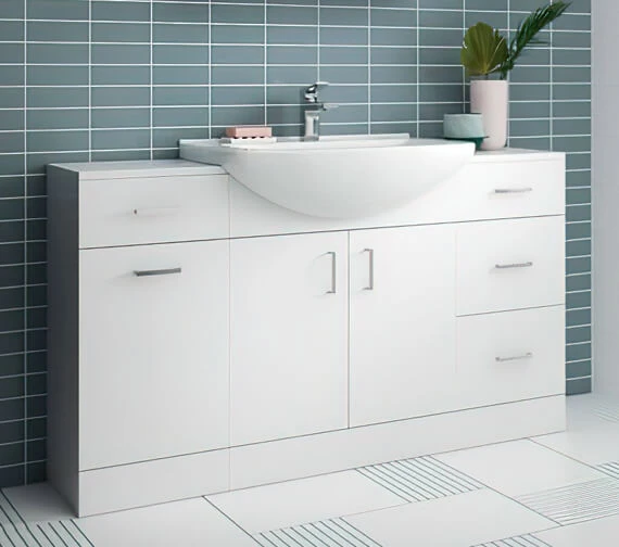 Nuie Mayford 1200mm Floor Standing White 3 Door 3 Drawer Cabinet And Basin