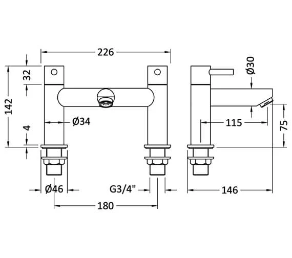 Nuie Series 2 Chrome Deck Mounted Bath Shower Mixer Tap