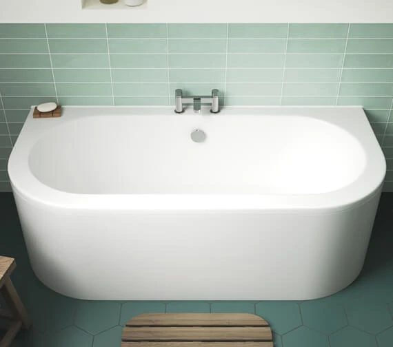 Nuie Shingle 1700 X 750mm Curved Back To Wall White Bath With Panel