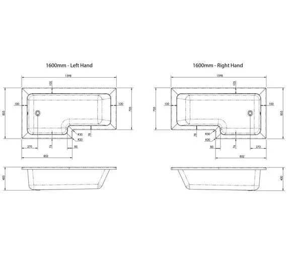 - Details For 1600mm Bath:.