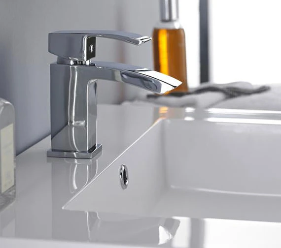 Nuie Vibe Single Lever Basin Mixer Tap is a miniature tap is suited for use with small or corner basins and adds a distinctly modern aspect to the cloakroom or bathroom. Simple inscriptions denote hot and cold directions for the single-lever mixer, which features ceramic disc technology to ensure a smooth and even flow.