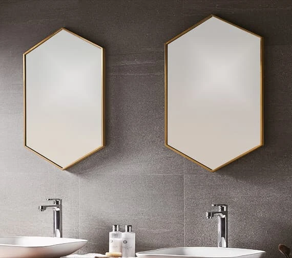 The Origins Living Docklands Hexagon 500mm Framed Mirror is a chic, unique and gorgeous addition to any bathroom design from classic to classy in overall look. Suitable for portrait or landscape configurations upon installation, this unit is certain to catch attention, no matter where the user chooses to place it. Available in more than one type of frame depending on the colour preferences chosen; the black frame is created from aluminium and the brushed brass frame is coated in stainless steel.