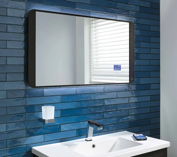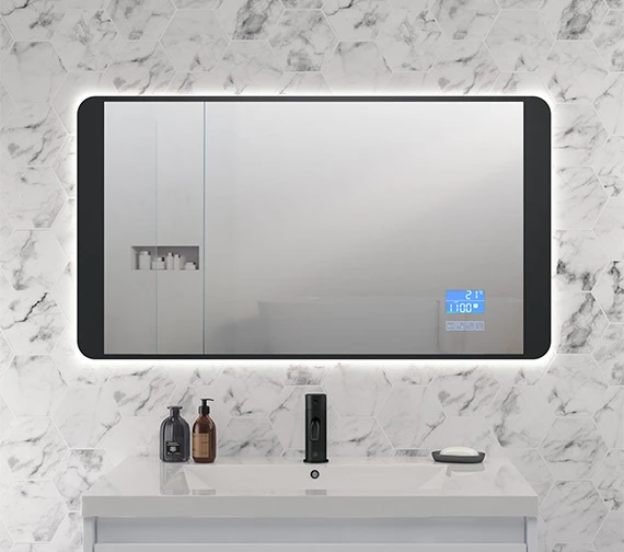 QS Basics Dibex 900 X 500mm Digital Matt Black Bluetooth LED Mirror