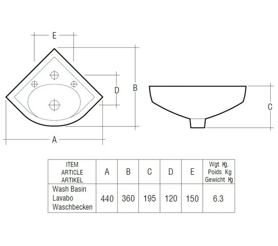 When you are looking for a space-saving design in sanitary ware, this Wall Hung Corner Basin from RAK Ceramics is best. With its simple yet pleasing looks, conical shape, this elegant corner basin from their Compact range can set the tone for a fabulous bathroom design. This basin has an exquisitely sculpted vitreous china profile which makes it robust for you to admire its stunning good looks especially when used with chrome mixers and . It is encased in a pure white finish for a strong and stylish statement. Includes one pre-drilled tap-hole and is also available with two tap-hole options.