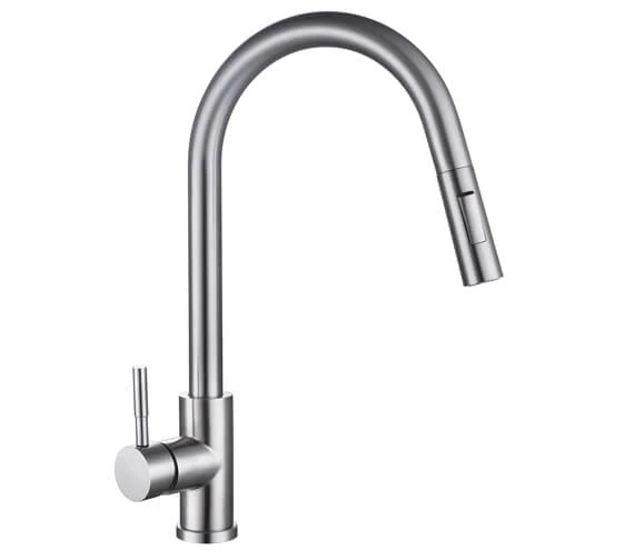 The RAK Prague One Touch Pull Out Kitchen Sink Mixer Tap is constructed from remarkably durable and long-lasting brass material and features a classic chrome finish that shines as part of any modern or traditional kitchen layout.